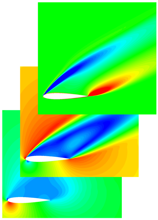 A Database containing a Multi-Fidelity database of flow fields: Low-Fidelity (RANS) obtained with SU2 software; High-Fidelity (LES) obtained with CharLes software.